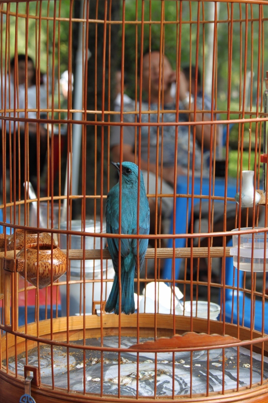 Our fears were quashed, however, within minutes of stopping at our first “sight”, an unassuming park café with a special feature – which was that each morning, from daybreak, about two dozen gentleman arrive there for tea, coffee, cigarettes and chat, bringing with them intricately arranged and maintained wooden cages, inside which were housed songbirds of a variety of colours and breeds, complete with ornate little perches and ceramic pots of live maggots and crickets to keep the birds happy.
