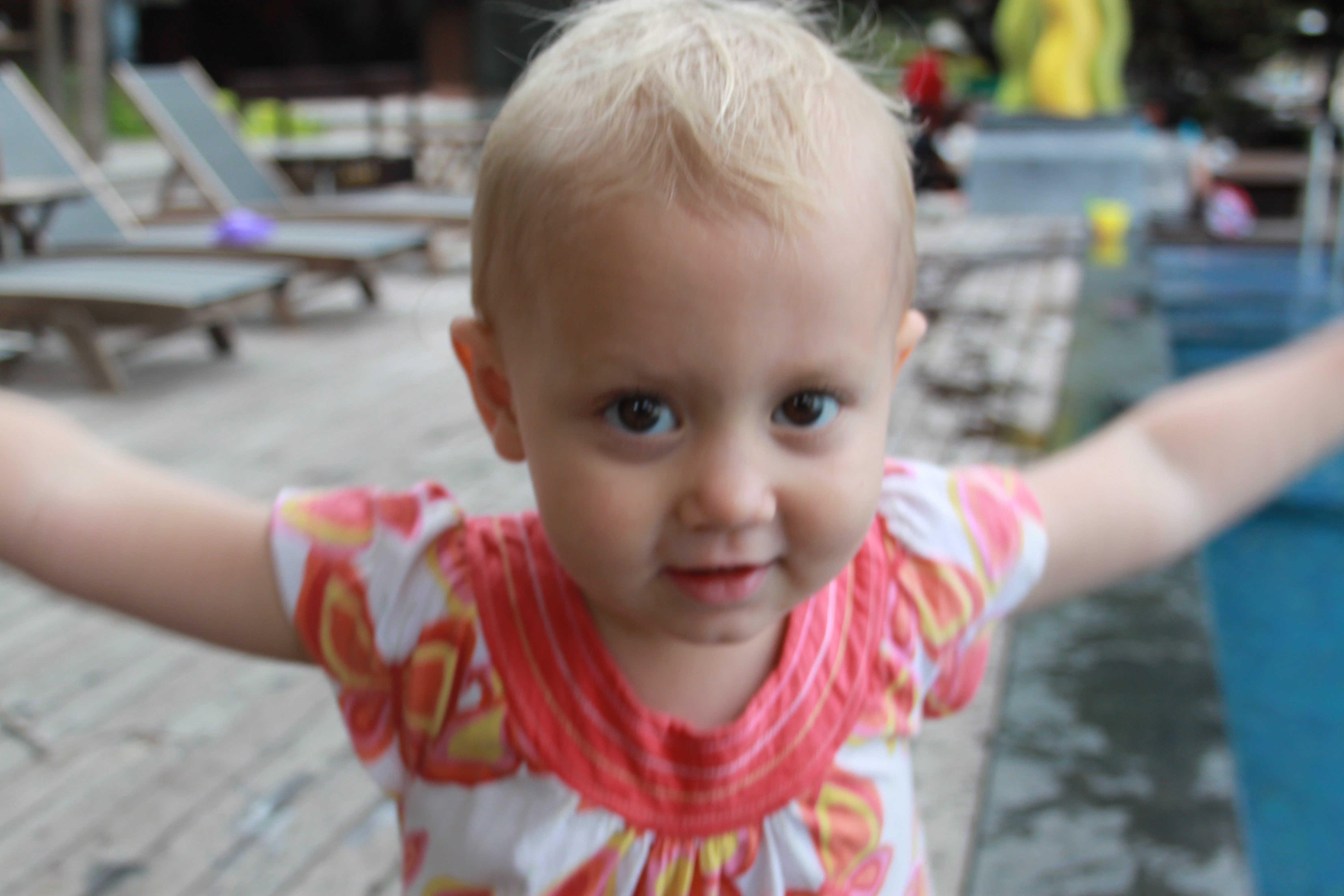 1. Witnessing an old Japanese man who had sat in the sun for 3 days, barely even flinching, suddenly move, Ninja-style, at lightening speed from his sun-lounger to dive into the pool and fish out Flo, who had herself jumped out of her rubber ring. The man clearly thought Flo couldn’t swim, and shot me a surprised glance as he emerged from the water clutching a fairly confused 4 year old (who can swim impeccably for her age.) Much laughter afterwards as I explained my daughter’s aquatic credentials to him, and much bowing of apology!
